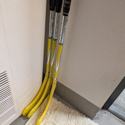 Køllene er pent brukt og bladene er i god stand uten store hakk eller slitasje. Perfekt for deg som trenger utstyr til vennegjengen, skolen eller bedriftsidrettslaget.