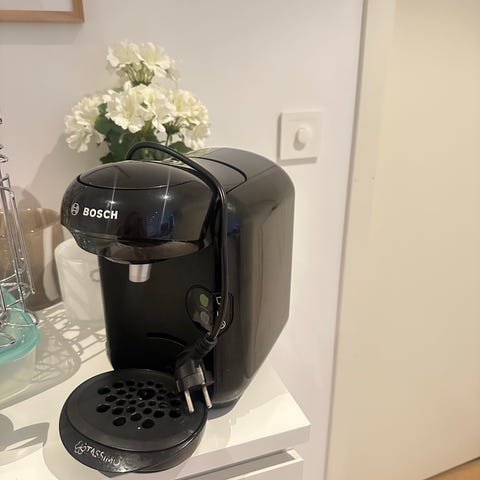 Kaffemaskinen er beregnet for bruk med L’OR-kapsler/Nespresso kapsler som kjøpes på butikken. Den har vannbeholder plassert bak på maskinen og dryppbrett foran for oppsamling av søl. Maskinen kobles til med vanlig strømledning og støpsel.