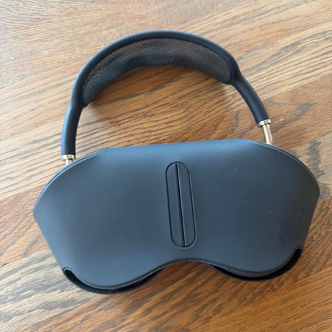 Apple AirPods Max hodetelefoner i hvit farge usb-c. Over-ear hodetelefoner med integrert hodebøyle og medfølgende etui/Smart Case som vist på bildet. Trådløse hodetelefoner som er egnet til bruk med kompatible Apple-enheter og andre enheter som støtter Bluetooth-tilkobling. Ladekabel medfølger å esken den kom i.
