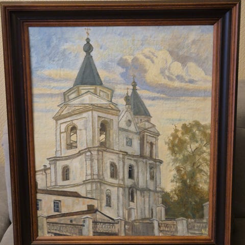 Dette er et vanlig motiv i kristen kunst, også kjent som «Kristus på Oljeberget». Maleriet har pass og ankom til Norge for nesten 20 år siden fra Kyiv i Ukraina. Den nye rammen ble installert i Ålesund for 10 år siden. Maleriet ble malt av en samtidskunstner; signaturen hans er i hjørnet. Kan send.