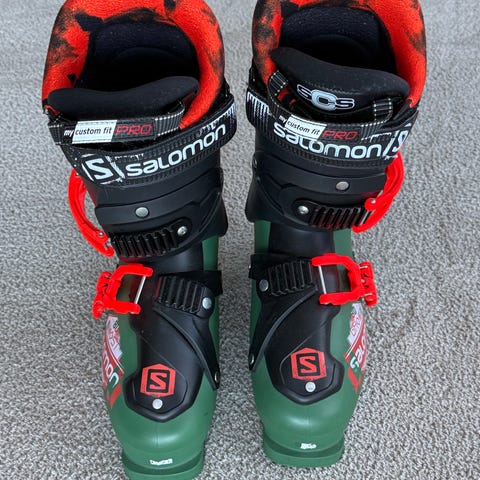 Borrelås på hø sko er defekt, se bilde. Alpinstøvler i svart farge. Støvlene har fire justerbare spenner foran og høy skaft med polstret innersko for støtte og komfort. Egnet til bruk i alpinbakke for voksen eller ungdom, avhengig av størrelse. Plastkonstruksjon med metallspenner gir god stabilitet rundt fot og ankel.