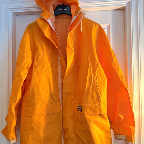 Claire regnjakke for dame i størrelse 46. Jakken er rosa med hvitt mønster og har hette. Lengden går ned over hoftene og gir god dekning i regnvær. Passer som yttertøy på regnværsdager og til hverdagsbruk utendørs.
