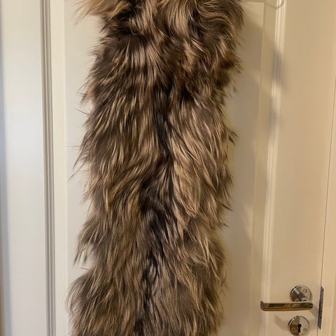 Mykt og varmt plagg som brukes over klær. Praktiske lommer og frynser nederst. Lite brukt og i god stand. Fin som et ekstra lag på kjølige dager.