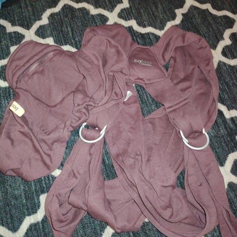 Babylonia ringslynge i rosa bomull. Slyngen har doble metallringer for justering og en liten lomme med merkeetikett på utsiden.