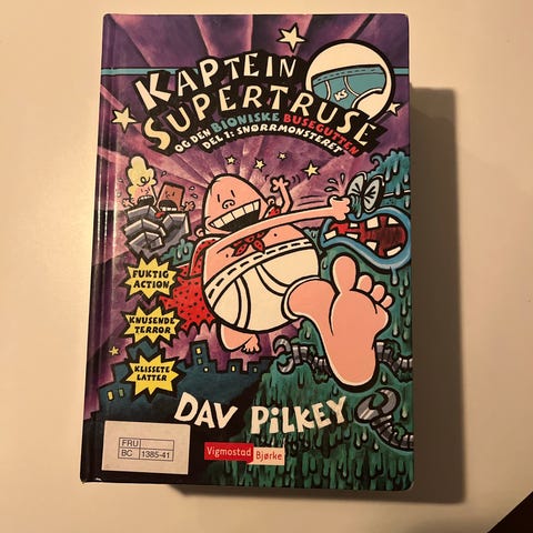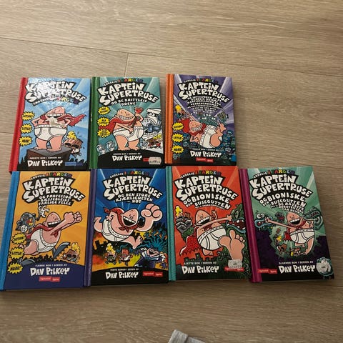 Bokpakke med bøker av Dav Pilkey fra serien Kaptein Supertruse / Captain Underpants. Inneholder flere titler i serien, både på norsk (Kaptein Supertruse) og engelsk (Captain Underpants). Bøkene er illustrerte barnebøker/tegneserier beregnet for barn i skolealder. Passer til høytlesning eller egenlesning for barn som liker humor og actionpregede historier i serieformat.