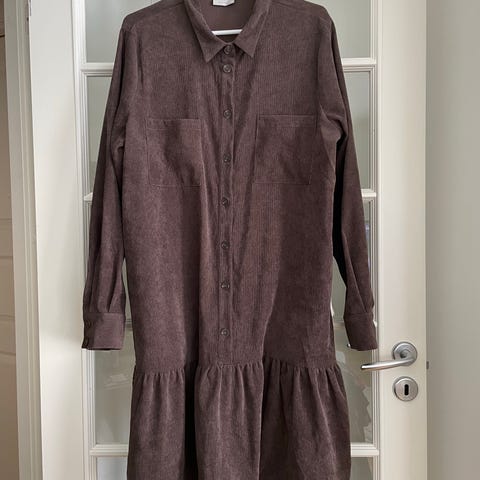 Jean Paul hverdagskjole i cordfløyel for dame i størrelse L. Kjolen er blå og har krage og knepping hele veien foran. Lange ermer med strikkmansjetter og innfelt strikk i rygg gir en lett innsvinget fasong. Passer som en enkel hverdagskjole i mykt cordfløyelsmateriale.