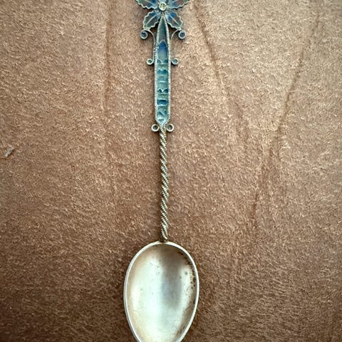 Moccaskje, 11 cm, 925s. Håndemalje. Meget pen. Aldri brukt. Ikke pusset. Samleobjekt. Norsk 1940-60 tallet. Hentes Elstangen/Hole eller sendes via fiks ferdig.