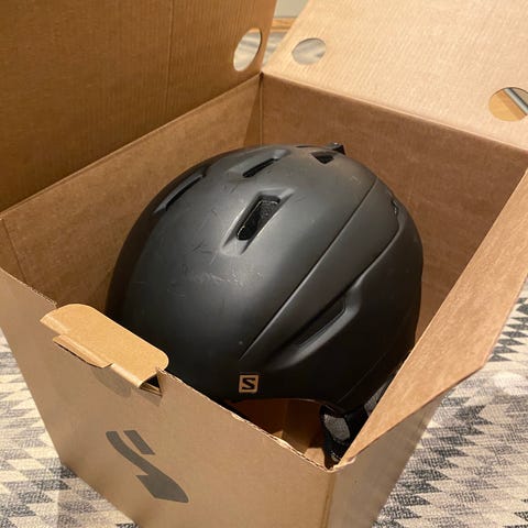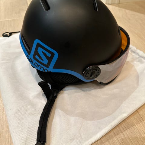 Hjelmen har speilfarget visir som dekker hele ansiktet og gir beskyttelse mot vind og snø. Det er ventilasjonsåpninger på toppen av hjelmen og feste på oversiden, for eksempel til gopro-kamera. Leveres med Salomon oppbevaringspose.