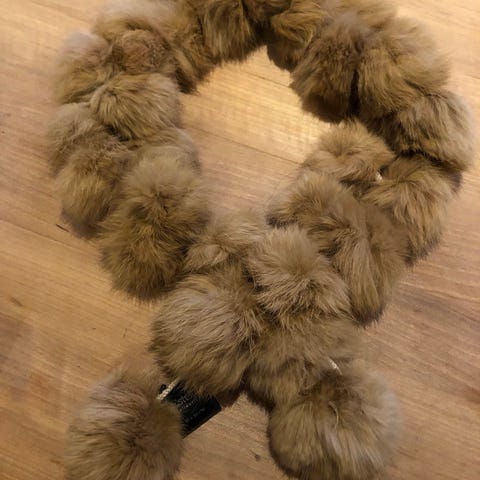 Kaninpels, sjal. Lukkes ved at ene endes legges inn i «løkkene» i skjerfet.