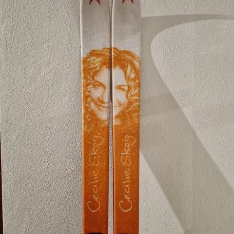 Cecilie Skog fjellski (med nye feller, ukjent merke), Alfa skisko og Swix fjellskistaver selges.