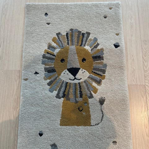 Gulvteppe til barnerom med uglemotiv i beige. Pent brukt, ingen flekker eller merker. Fra Bohus med merke Lone på teppet.