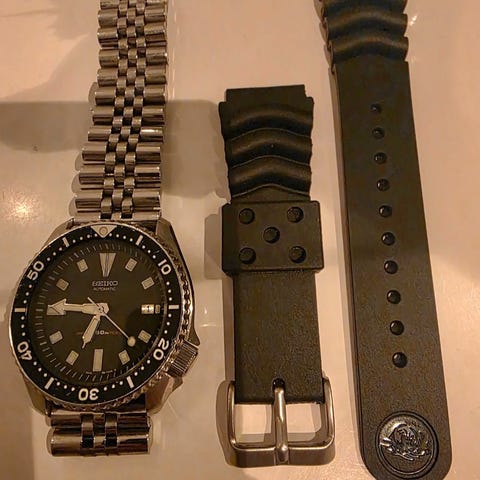 Selger en pen Zodiac Sea Wolf Automatic, referanse 513.55.47. Dette er en solid sveitsisk dykkerklokke med klassisk design, stållenke og automatisk urverk. Klokken går som den skal og sitter godt på hånden.