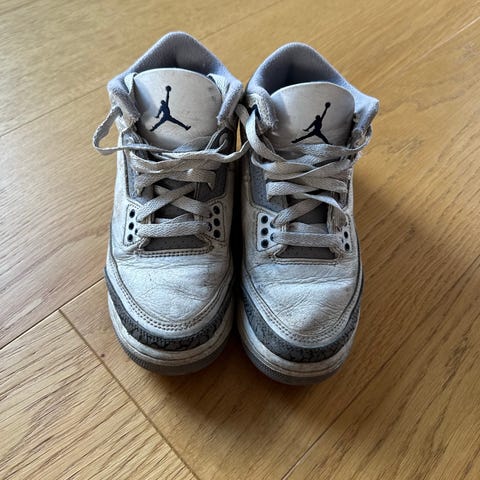 Nike Jordan 4 Retro til barn i størrelse 35. Skoene er pent brukt og har svart overdel med gule detaljer.