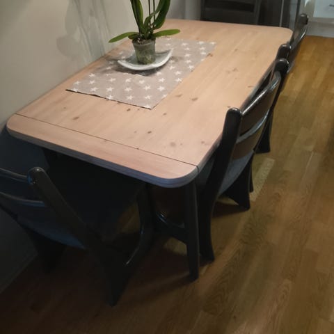 Pent og praktisk spisebord med 4 tilhørende stoler selges. Kjøpt for ca. 1,5 år siden.