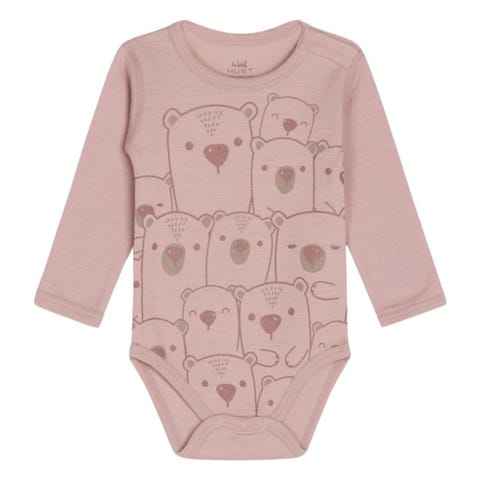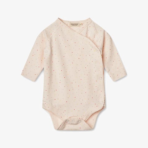 Hust & Claire body for jente i størrelse 98. Langermet body i beige bomull med trykk av hester. Materiale i myk bomull som egner seg til hverdagsbruk. Praktisk modell med trykknapper i skrittet for enkel av- og påkledning.
