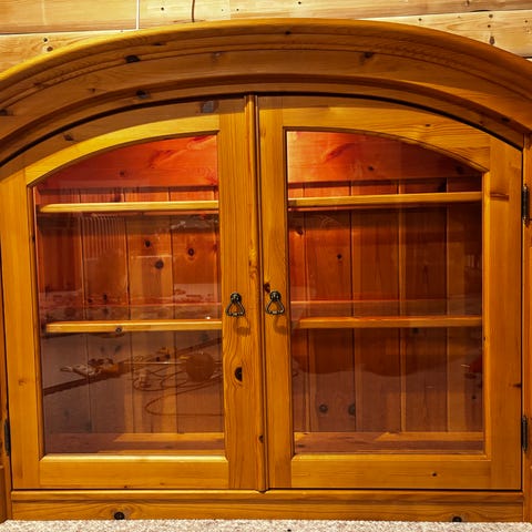 Enkelt heltre skap med 2 speildører med 2 hyller av glass.