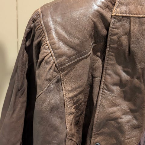 Italiensk tynn skinnjakke med svart för. Str 46, men liten i str. Tilsvarer 40