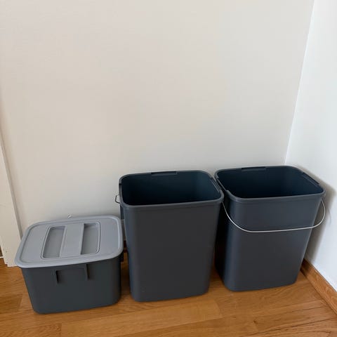 Utrekkbare avfallsbøtter fra curver. Avfallsposer passer perfekt i disse søppelbøttene. Fine til kildesortering. De passer fint i kjøkkenskap. Lett å dra inn og ut. Utrekkfunksjonen gjør at det er enklere å kaste ting uten unødvendig søl. Anbefales! Selges da vi har nytt kjøkken med integrert avfallshåndtering.