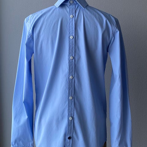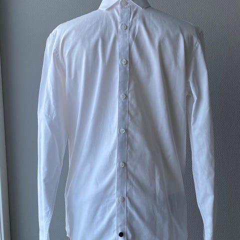 Tiger of Sweden skjorte for herre. Skjorten er hvit og laget av bomull. Modellen har lange ermer, klassisk krage og knepping foran. Litt gjennomsiktig. Nesten ubrukt.