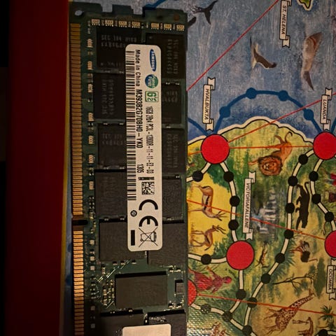RAM-modulen har kapasitet på 32 GB og er av typen DDR4 med hastighet PC4-2400T. Modulen er merket som ECC Registered (RDIMM), noe som betyr at den er beregnet for systemer som støtter feilkorreksjon, typisk servere eller arbeidsstasjoner. Formfaktoren er standard DIMM for stasjonære/server-hovedkort.