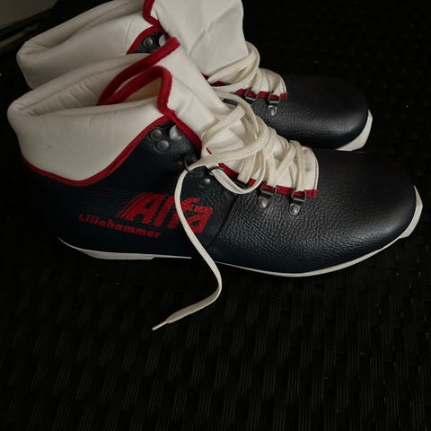 Jette langrennsstøvler i blå farge med lisser. Såle tilpasset klassisk langrennsbinding. Overdel i syntetisk materiale med polstret ankelparti for støtte. Egnet til bruk på langrennsturer. Kjent Jette-logo og grafikk på siden og hælen. Pent brukt i god stand selges kroner250. Str 40