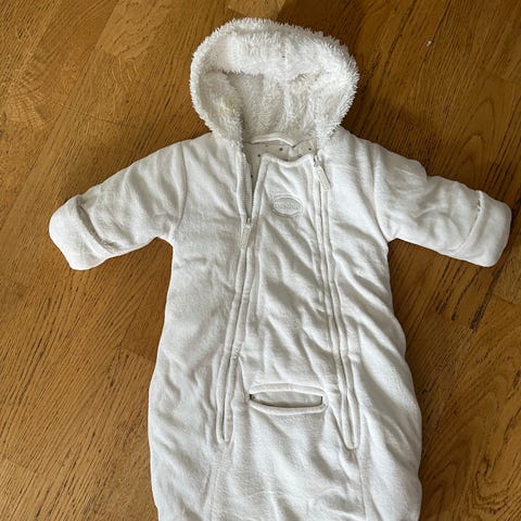 Vinterdress til baby selges da den ble fort vokst ut av. Fin å bruke for å f.eks. bære babyen ute i sele. 100% polyester, men varmer godt på kalde dager.