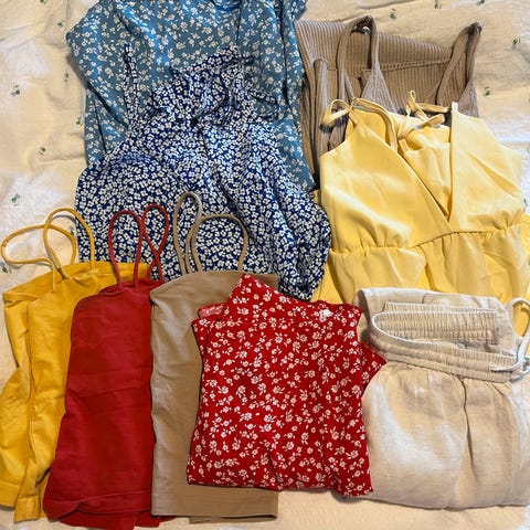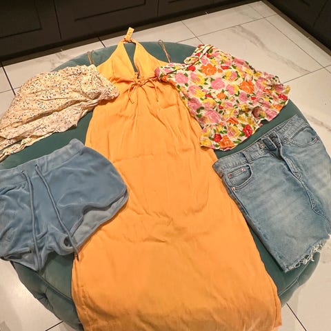 Klespakke med sommertøy. Kjoler, søte topper, shorts og skjørt. 300,- samlet!