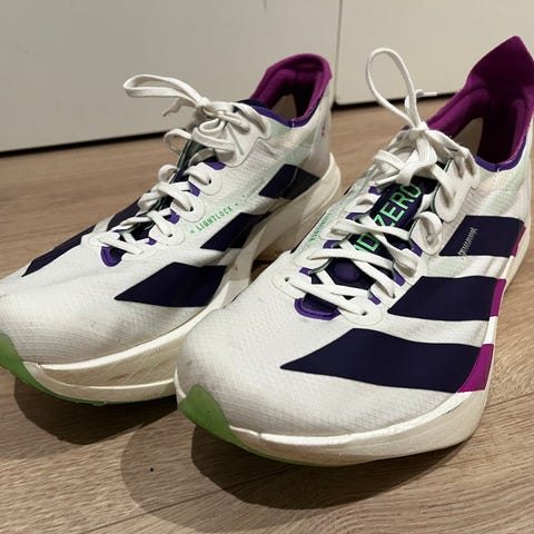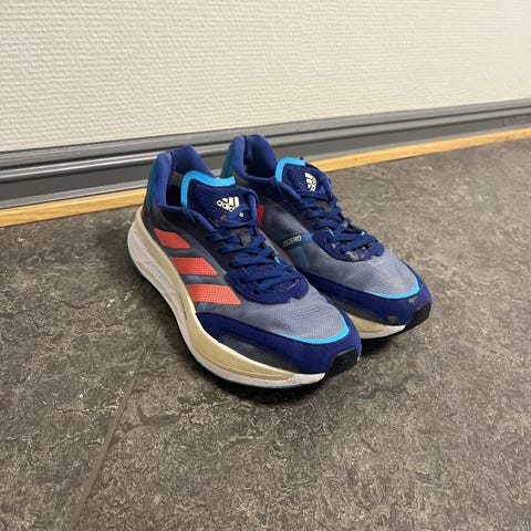 Skoene har overdel i pustende materiale og mellomsåle med demping tilpasset løping på hardt underlag. Yttersålen har mønster som gir grep på asfalt og andre jevne underlag. Fargekombinasjon hovedsakelig gule med røde og oransje detaljer. Egnet til trening og hverdagsløping.