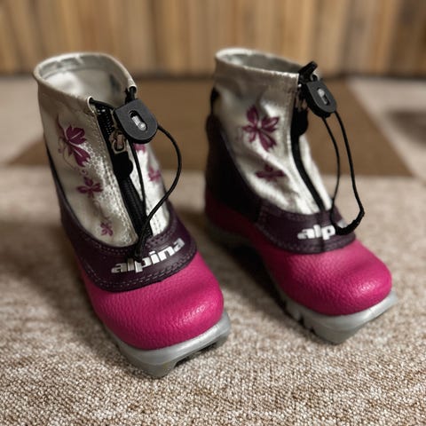 Alpina Frost langrennssko for barn i lilla farge. Skoene har glidelås innerst og borrelåslukking over vristen og ved ankelen for enkel justering og god passform. Enkle for barn å ta på selv. Overdelen er laget i et slitesterkt syntetisk materiale med motiv på siden. Innvendig er skoene isolert for ekstra varme. Normal på størrelsen.