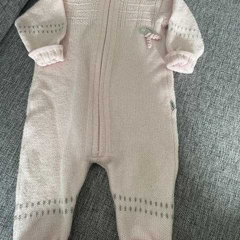 Lillelam ulldress for jente i størrelse 62 i rosa farge. Dressen er strikket i ull og har glidelås foran. Den har hette og ribbestrikkede avslutninger. Passer som ytterplagg eller mellomlag for baby i størrelse 62. Ullmaterialet gir god varme og komfort for barnet.