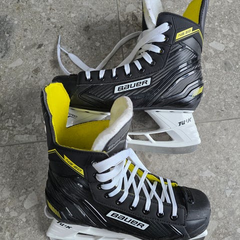 Bauer ishockeyskøyter. En del synlige merker spesielt foran på skøytene - se bilder. Men det er kun visuelt, skøytene er ellers uten skader.