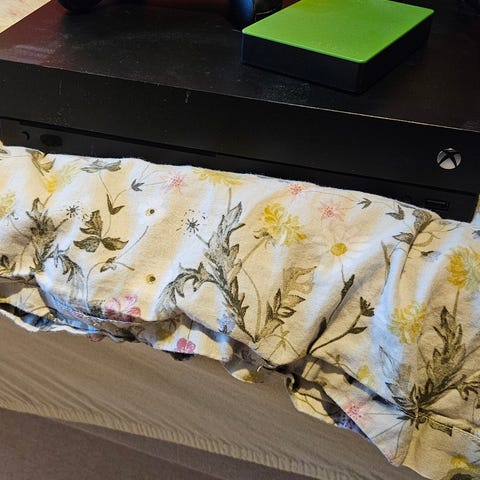 Selger en Xbox One X, med 1tb harddisk, 1 kontroller, 1 spill, hdmi kabel, og strømledning. Selges for 1500kr. Kan sendes.