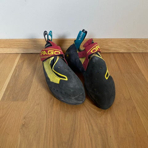 Scarpa Drago junior klatresko brukt en buldreøkt. Innser at disse ikke passer min fot. Strl 36.