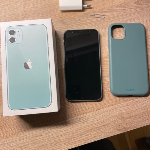 Selger min helt strøkene iPhone 16 i fargen turkis.