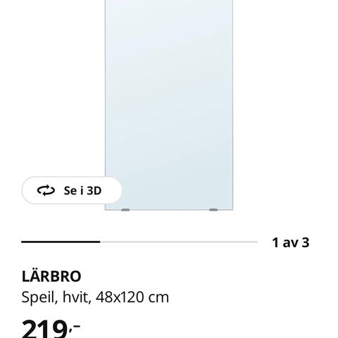 IKEA stående helkroppsspeil med hvit ramme 160x48 cm