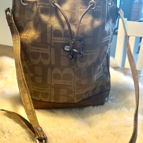 Vintage bucket bag fra Burberry i svart canvas og lær. Vesken trenger å pleie læret, samt fikse sømmene rundt som avbildet. Ellers er selve canvaset i god stand. Vesken kan fint brukes som den er også 🥰