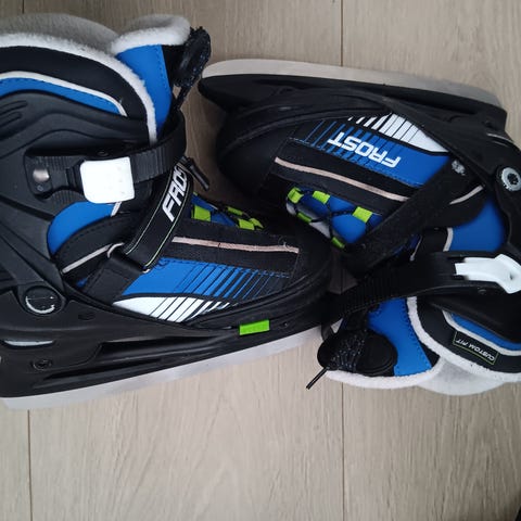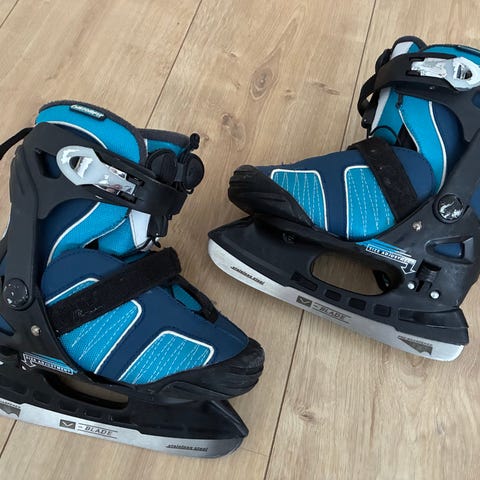 Det andre paret er ProFlyer modell i svart med blå detaljer. Dette paret har justerbar størrelse 34-37/1-4. Skøytene har plastkall, spenner for enkel stramming og polstret innside.