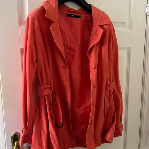 Grå blazerjakke fra Fransa i størrelse 46. Klassisk modell med krage og slag, to knapper i front og rette sidelommer. Ermene har tre knapper nederst. Passer som både penjakke eller til hverdags. Pent brukt.