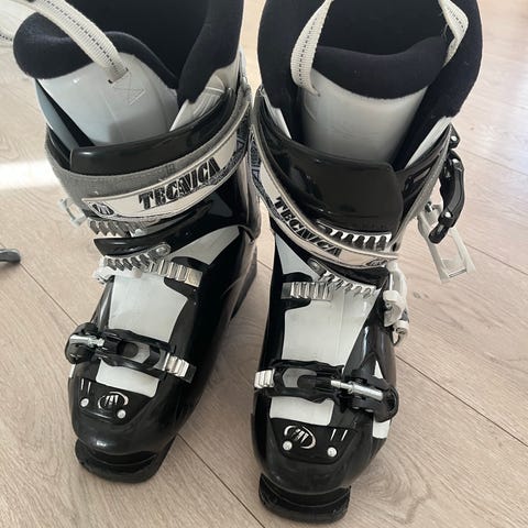 Tecnica Inferno alpinstøvler i oransje med hvite og svarte detaljer. Selges da de blir for små