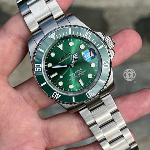 Dette er en håndmontert klokkemod og er ikke produsert, godkjent eller tilknyttet Seiko eller andre merkevareeiere. Seiko-navnet brukes kun for å beskrive urverket som er benyttet. Ønsker du en custom klokke tilpasset dine preferanser som skive, visere, kasse eller lenke, kan jeg lage dette på bestilling. Send meg gjerne en melding her på Finn eller via nettsiden veromods.com.