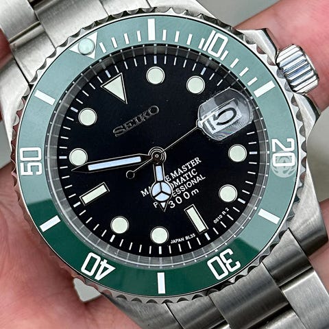 Dette er en håndmontert klokkemod og er ikke produsert, godkjent eller tilknyttet Seiko eller andre merkevareeiere. Seiko-navnet brukes kun for å beskrive urverket som er benyttet. Ønsker du en custom klokke tilpasset dine preferanser som skive, visere, kasse eller lenke, kan jeg lage dette på bestilling. Send meg gjerne en melding her på Finn eller via nettsiden veromods.com.