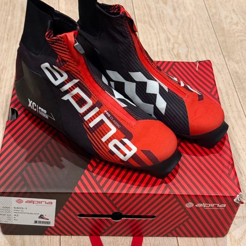 Alpina Pro Classic langrennsstøvler som har gått Birken én gang og to turer ellers. Selges da de er noen millimeter for små. Kjøpt på Bull Ski. Her er dagens annonse fra Bull: