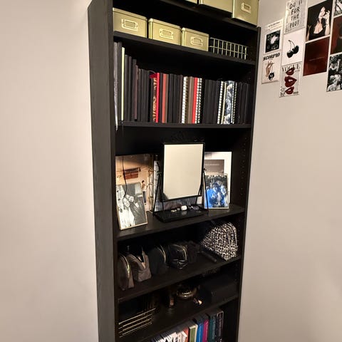 Den nederste hylla har en plate som er litt løs, men hylla er fortsatt stødig og fungerer fint til oppbevaring av bøker og andre ting. Det er fint mulig å bruke den nederste hylla.
