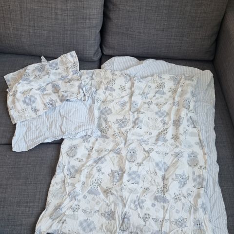 Dyne- og putepakke for baby. Her får du alt du trenger til de første par årene. Dyne både til nyfødt og større baby. Den største dyna er en norskprodusert Andungen dyne, den andre er fiber. Pute og div. dyne/putetrekk følger med, noe er uåpnet, og mesteparten svært lite brukt.
