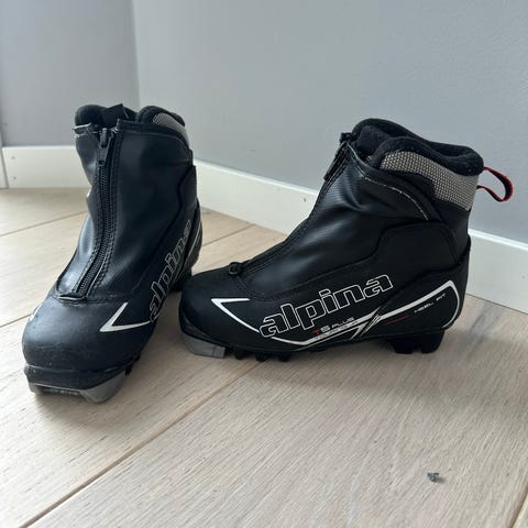 Alpina langrennsstøvler i svart syntetisk materiale med røde lisser. Støvlene har såle til klassisk langrenn med feste for moderne bindingssystem foran. Innvendig fôr i tekstil for økt komfort og varme. Egnet til bruk på langrennsturer og trening. Størrelse fremgår av merkelappen på innsiden av skoen. 26