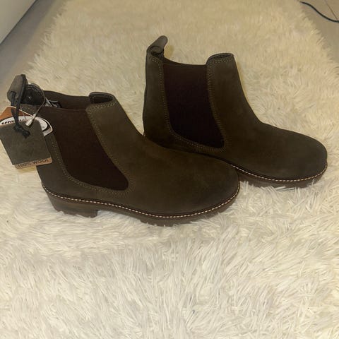 Nesten ubrukte støvletter/ Chelsea, selges. Sorte, med gode såler og ekte ullfor.