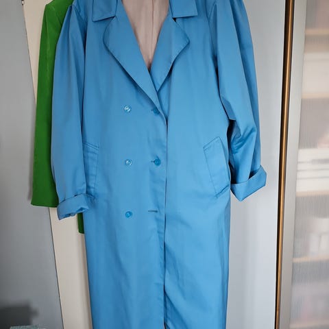 Vintage vår/sommerkåpe fra Junesco, Sverige selges rimelig. Str. 44. Svært pent brukt med fine detaljer. Lommer og innerlomme. Lukkes med knapper. Fòret. Midjebånd mangler.