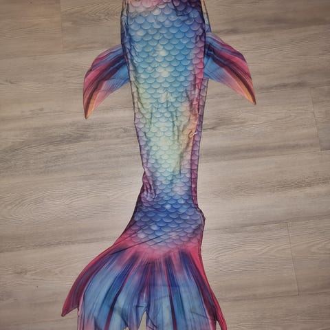 Fin havfruedrakt/kostyme str. 92 selges. Passer som utkledningsklær til karneval, temafester eller lek hjemme. Brukt kun en gang. Fra røyk og dyrefritt hjem.
