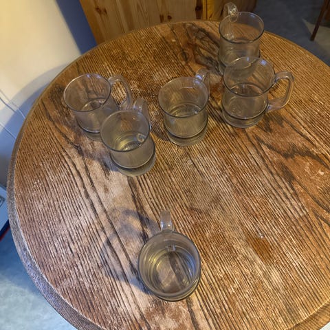 Gløggsett i keramikk i mørkegrønn farge. Settet består av en gløgg gryte med stativ for varme-kilde, 6 kopper med hank og en skål i samme serie. Keramikkmaterialet holder godt på varmen og er enkelt å rengjøre etter bruk.