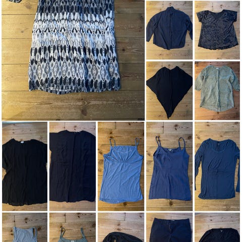 Denne klespakken inneholder 16 sommerlige plagg i Str XXL (eller tilsvarende). Pakken inneholder kjoler, topper og bluser fra merker som Noa Noa, zizzi og Masai. Klærne er for det meste veldig pent brukt, noe også ubrukt med lapp på. Verdien på klærne ligger på mange tusen, så her kan det virkelig gjøres et kupp! Jeg selger flere klespakker, så det er bare å kikke om det kan være av interesse. Ved kjøp av to klespakker kan de sendes i samme posten-pakke. Denne klespakken inneholder: